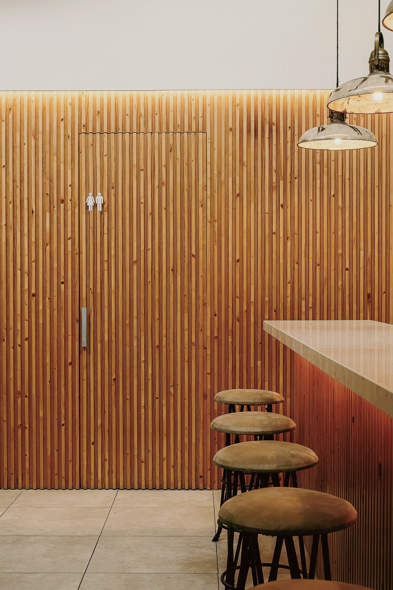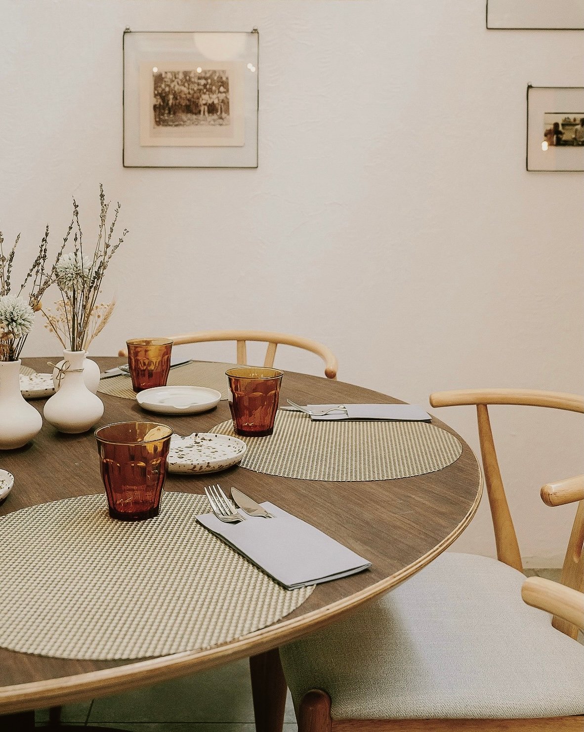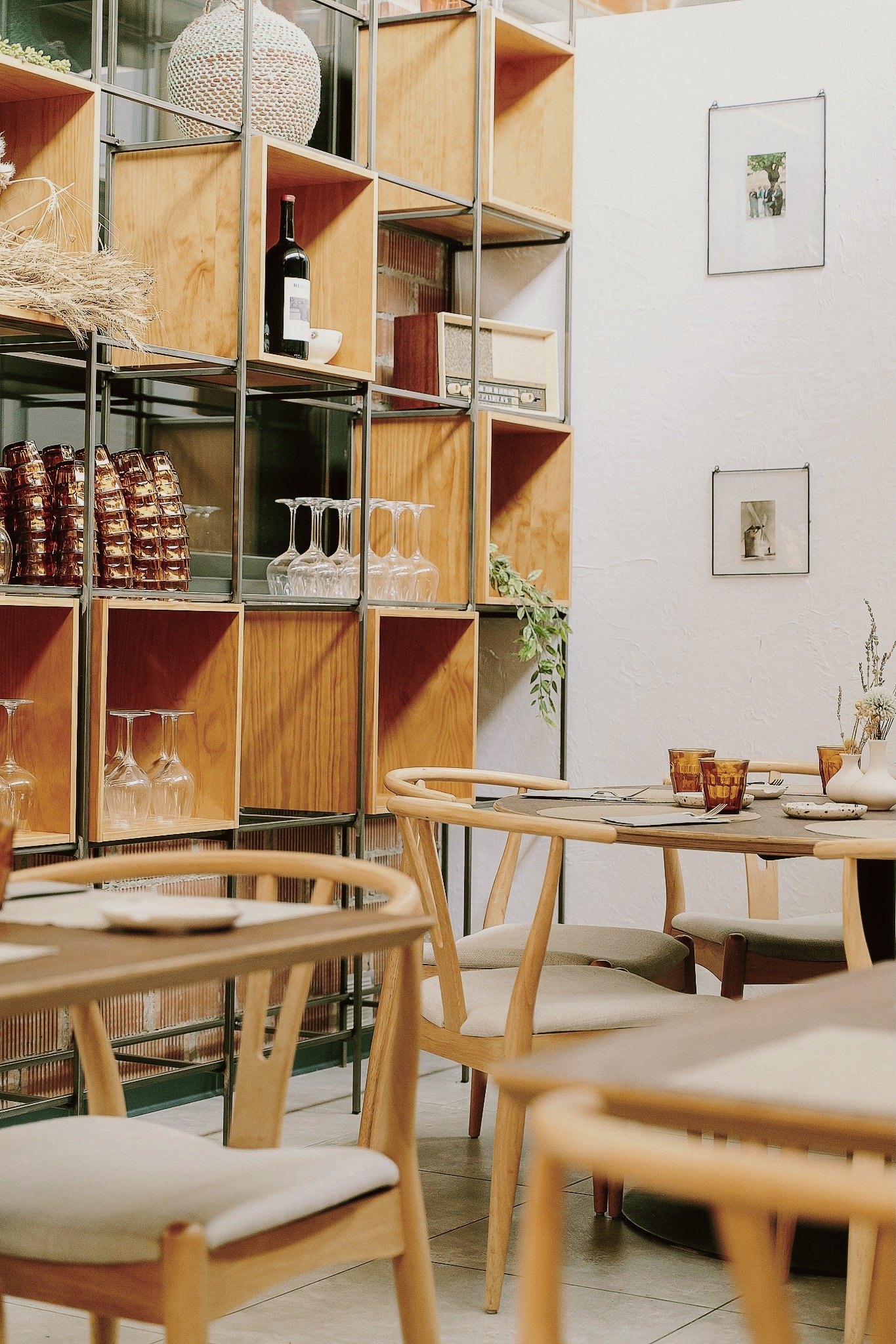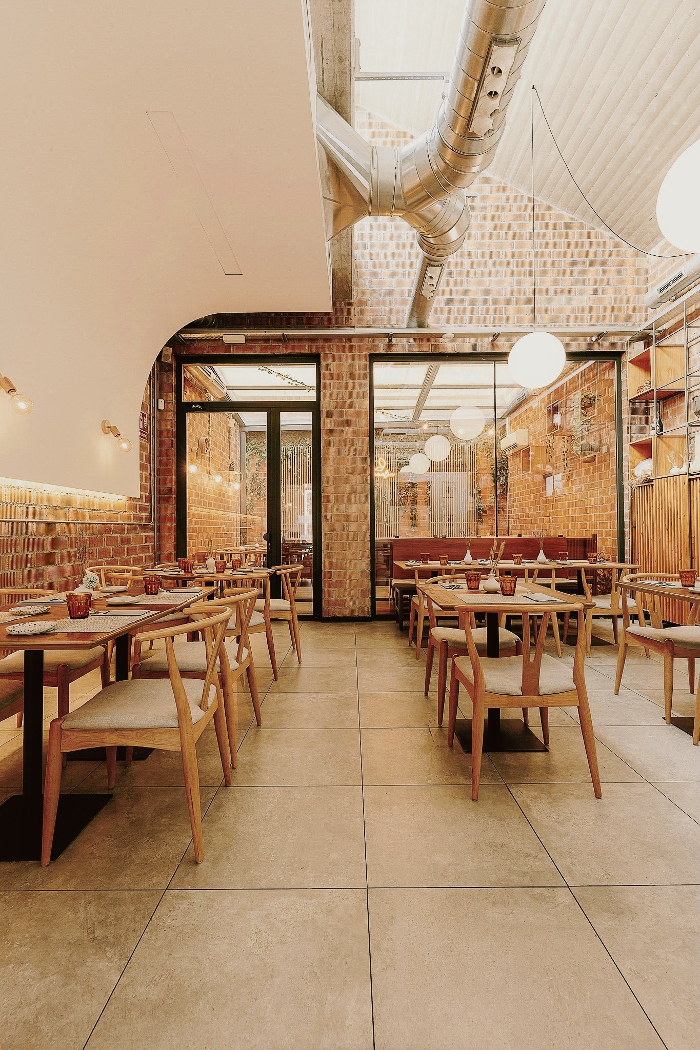La fusión entre tradición e innovación en un espacio moderno e industrial es un reflejo del tipo de gastronomía ofrecida en este proyecto gastronómico. Buscamos una estética en el interiorismo tradicional manchego respetando el espacio existente al máximo. El interior, ambiente diáfano, combina muros de ladrillo en bruto y hormigón visto en color natural, con instalaciones vistas y mobiliario en madera. La presencia de textiles con colores y estampados tradicionales hace alusión a esa comida típica reinventada en la carta. La parte trasera del restaurante la compone un patio diseñado para dar mayor profundidad al espacio interior y ser utilizada como terraza, donde la presencia de vegetación genera un ambiente acogedor donde poder disfrutar de un espacio de ocio en la parte más privada del restaurante.