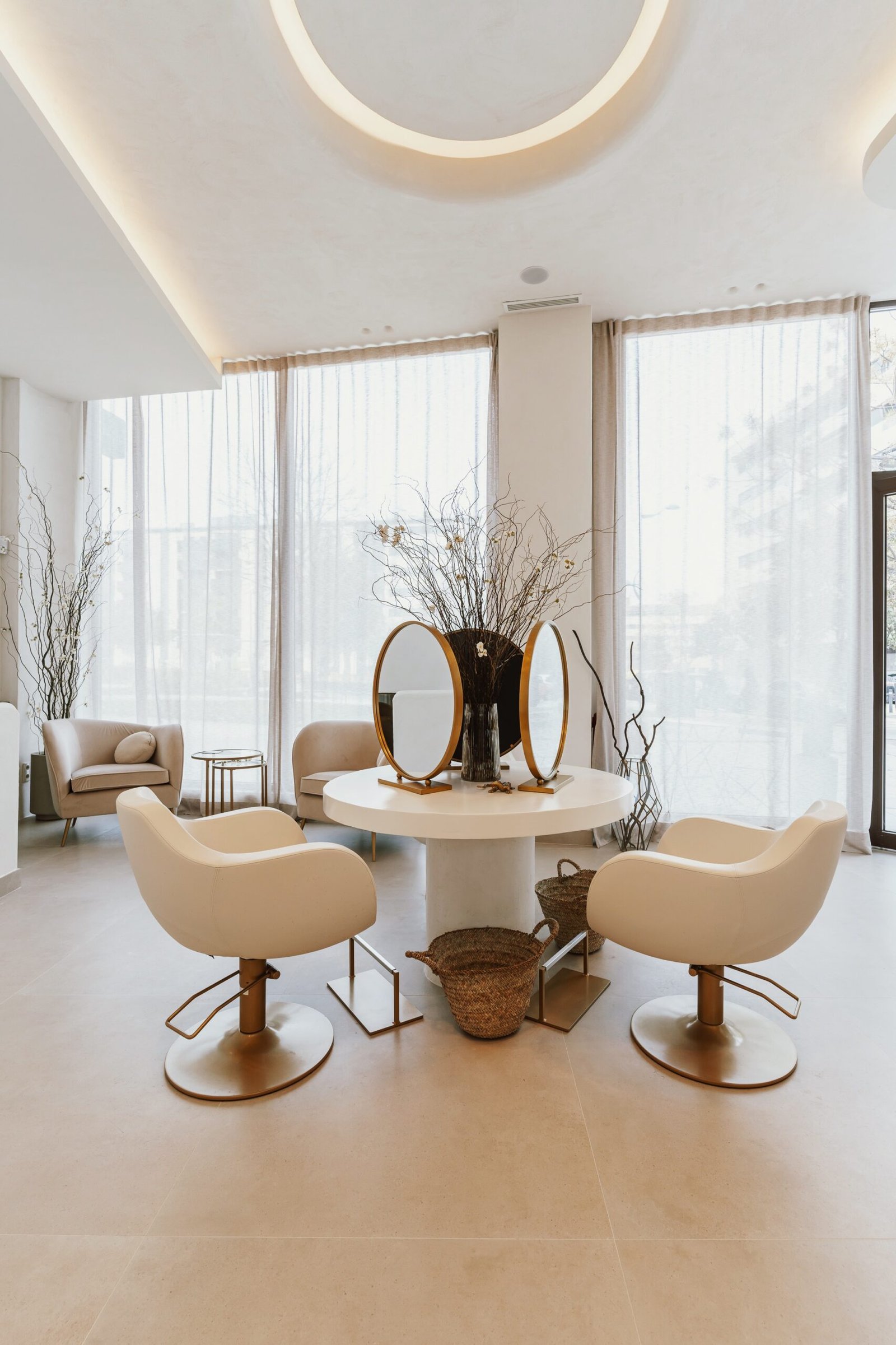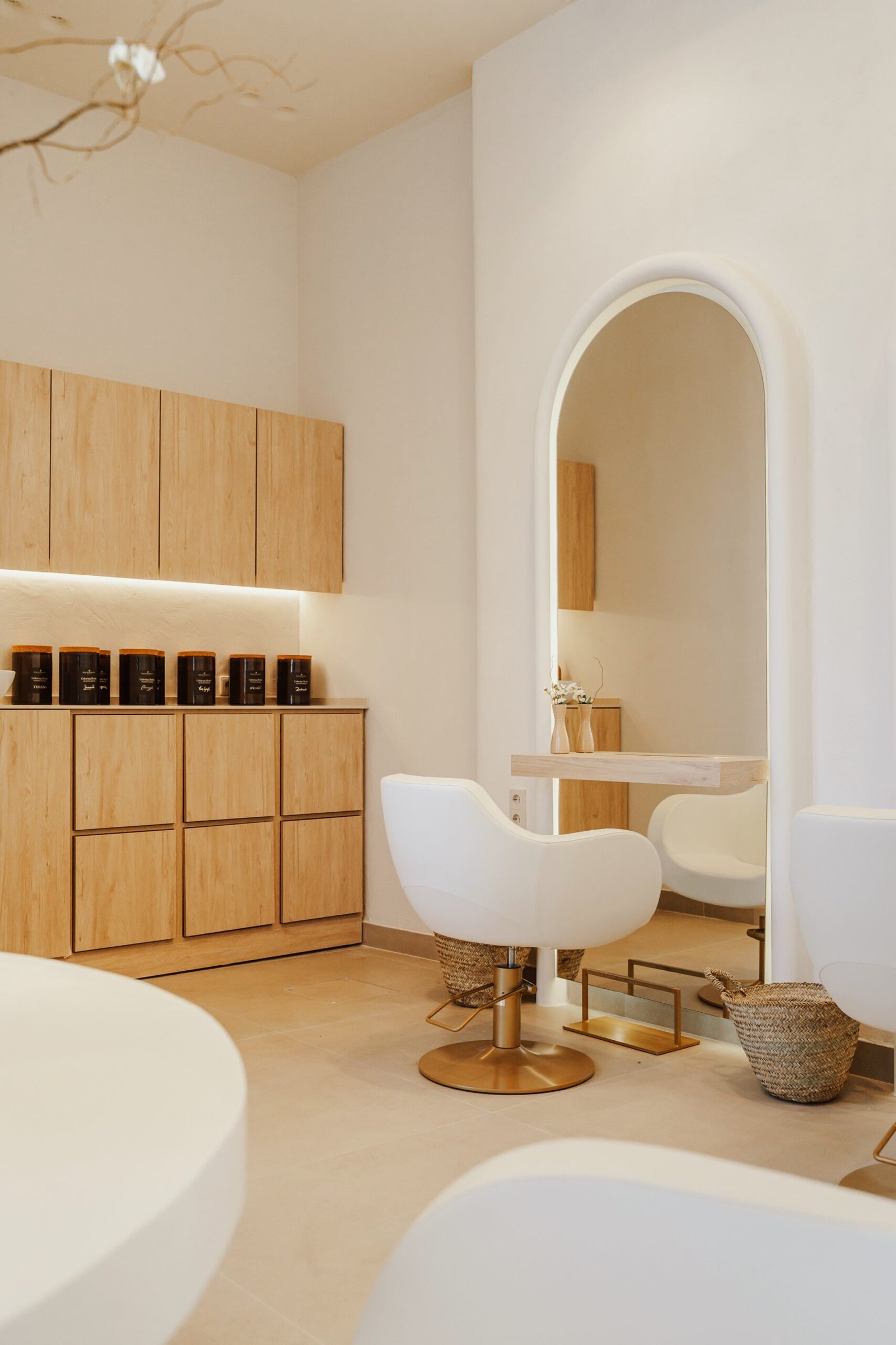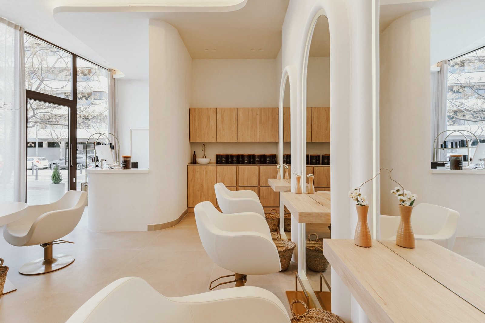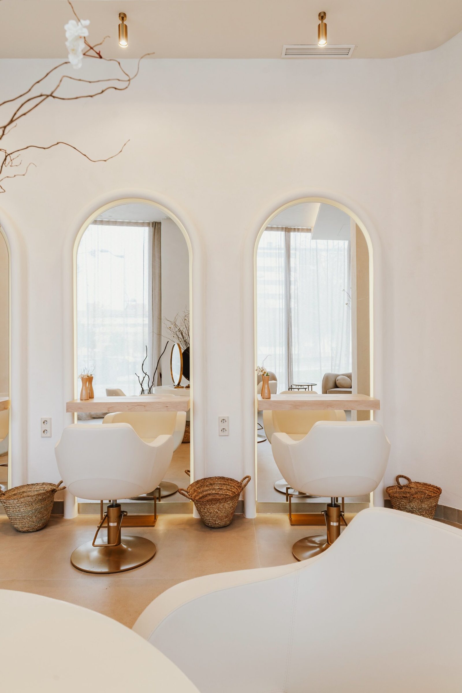 «Le Magie» es un espacio de bienestar y belleza donde el diseño es parte de la experiencia del usuario. Un ambiente neutro con texturas orgánicas que muestra la filosofía de sus tratamientos. En este local buscamos ensalzar los techos de gran altura con la iluminación indirecta y el contraste de texturas. Un óculo central es el protagonista que enmarca la zona central de tocadores. Los demás puestos de trabajo se encuentran enmarcados con unos arcos que aportan detalle al momento del peinado. El almacenaje oculto aporta limpieza visual, tanto en cabinas como en los espacios abiertos.